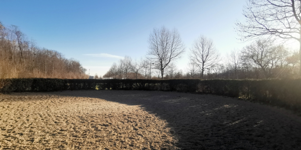 Wer sein Pferd an der Longe trainieren möchte, findet am nördlichen Ende des Pferdesportparks einen von Hecken umgebenen Longierplatz mit einem Durchmesser von 18 Metern.